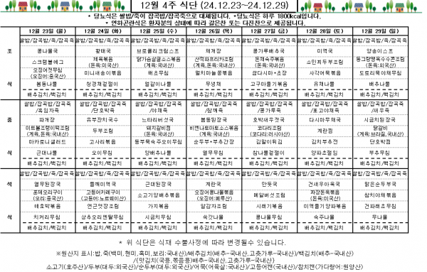 12월 4주 식단표