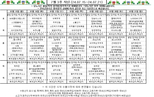"금주의 식단 메뉴를 확인 할 수 있습니다."