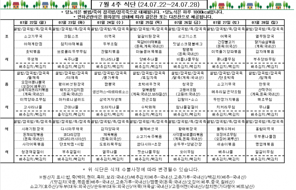 7월 4주 식단표