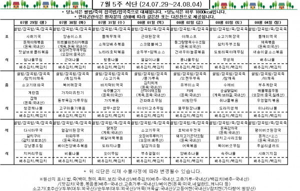 "금주의 식단 메뉴를 확인 할 수 있습니다."