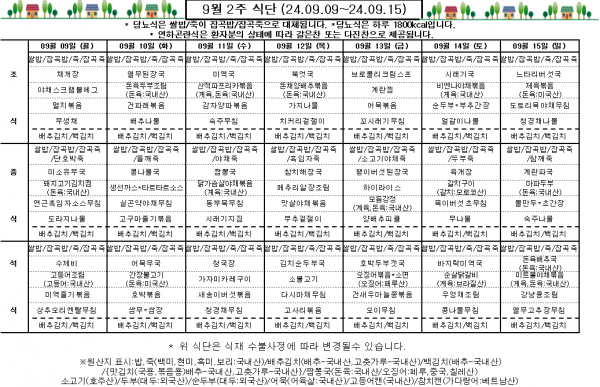 9월 2주 식단표