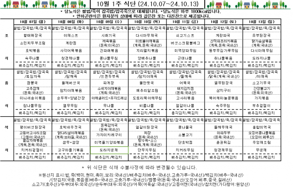 "금주의 식단 메뉴를 확인 할 수 있습니다."