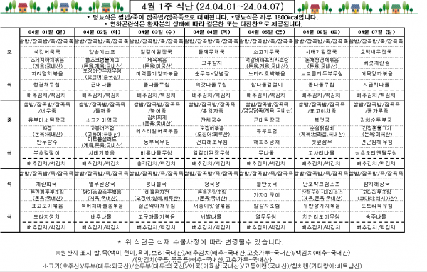 "금주의 식단 메뉴를 확인 할 수 있습니다."