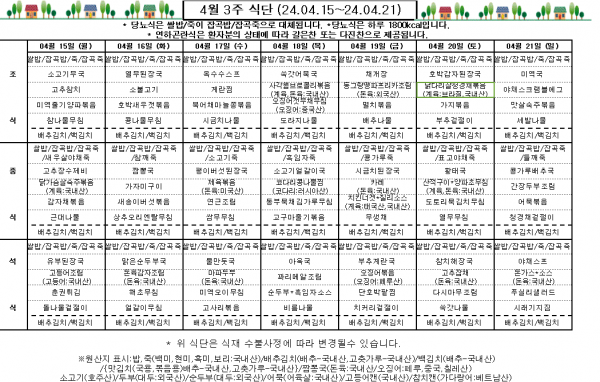 4월 3주 식단표