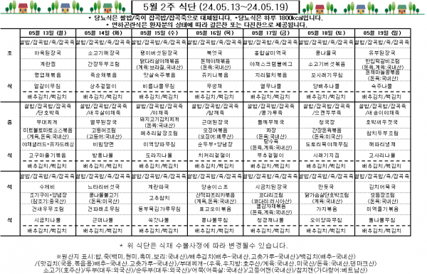 5월 2주 식단표