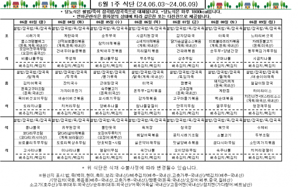 "금주의 식단 메뉴를 확인 할 수 있습니다."