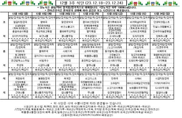 "금주의 식단 메뉴를 확인 할 수 있습니다."