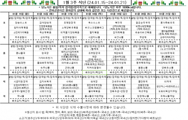 1월 3주 식단표