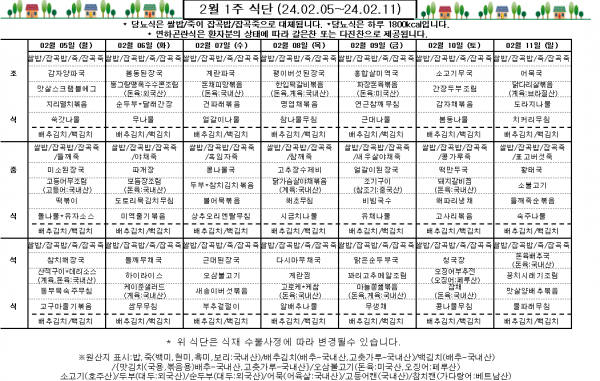 2월 1주 식단표