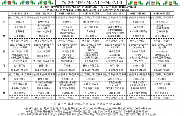 2월 2주 식단표