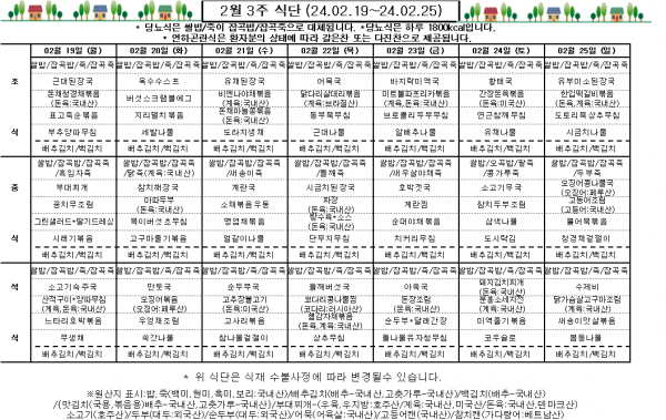 "금주의 식단 메뉴를 확인 할 수 있습니다."