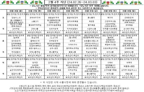 "금주의 식단 메뉴를 확인 할 수 있습니다."