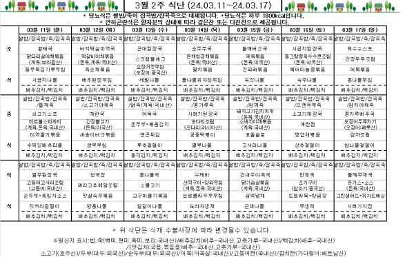 3월 2주 식단표