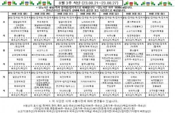 "금주의 식단 메뉴를 확인 할 수 있습니다."