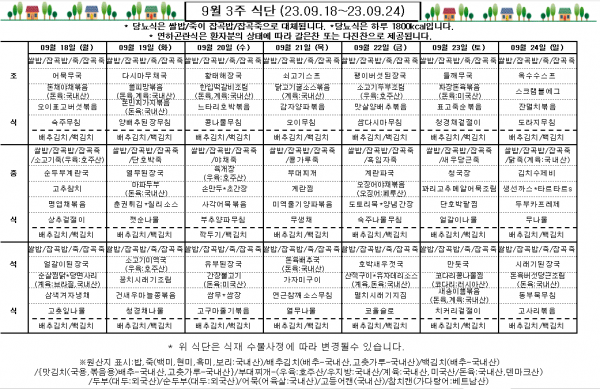 "금주의 식단 메뉴를 확인 할 수 있습니다."