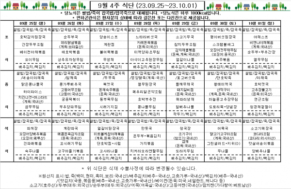 "금주의 식단 메뉴를 확인 할 수 있습니다."