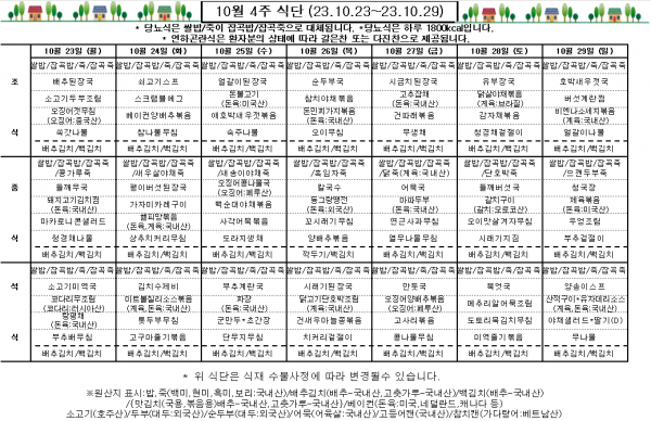 10월 4주 식단표