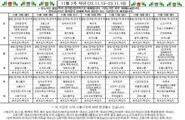 "금주의 식단 메뉴를 확인 할 수 있습니다."
