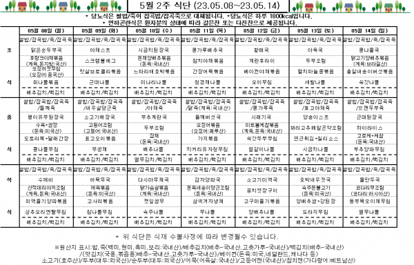 "금주의 식단 메뉴를 확인 할 수 있습니다."