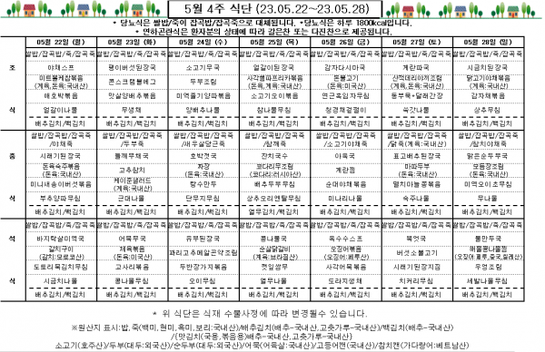 "금주의 식단 메뉴를 확인 할 수 있습니다."