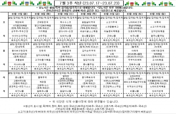 "금주의 식단 메뉴를 확인 할 수 있습니다."
