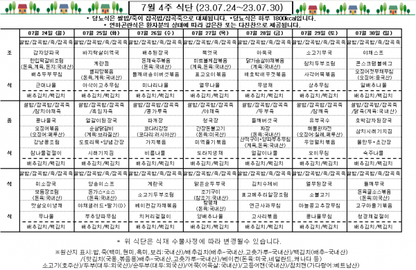 "금주의 식단 메뉴를 확인 할 수 있습니다."