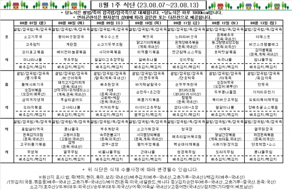 "금주의 식단 메뉴를 확인 할 수 있습니다."