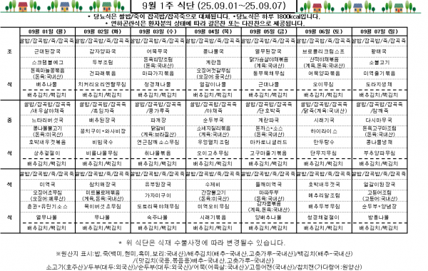 "금주의 식단 메뉴를 확인 할 수 있습니다."