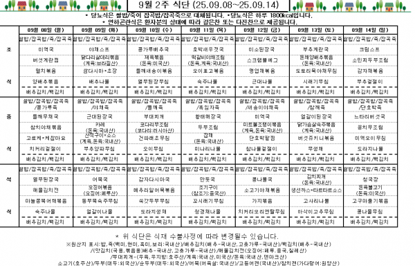 "금주의 식단 메뉴를 확인 할 수 있습니다."