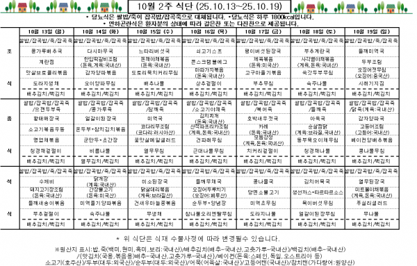 "금주의 식단 메뉴를 확인 할 수 있습니다."