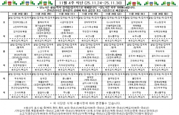 11월 4주 식단표