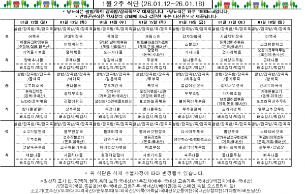 1월 2주 식단표