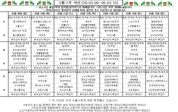 3월 2주 식단표