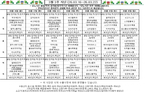 3월 3주 식단표