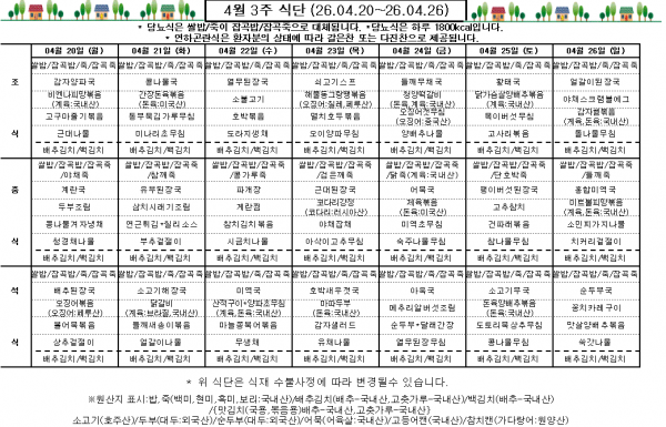 "금주의 식단 메뉴를 확인 할 수 있습니다."